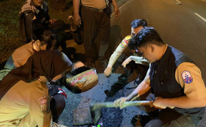 Perbaikan Jalan Berlubang oleh Pramuka UPB