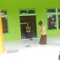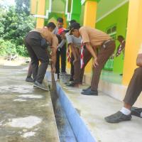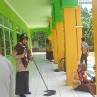 Kegiatan dimulai dengan apel singkat dan doa bersama. Setelah itu, para anggota Pramuka langsung membagi tugas. Ada yang menyapu dan mengepel lantai, membersihkan kaca jendela, merapikan karpet, hingga membersihkan halaman dan tempat wudhu. Suasana penuh kebersamaan tampak jelas, canda ringan berpadu dengan kerja keras yang tulus.