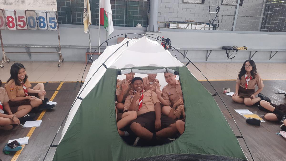 Pembinaan terhadap peserta dengan membiasakan mendirikan dan merapihkan tenda sebagai salah satu bentuk pelatihan keterampilan bertahan hidup dan memberikan rasa aman dan nyaman.