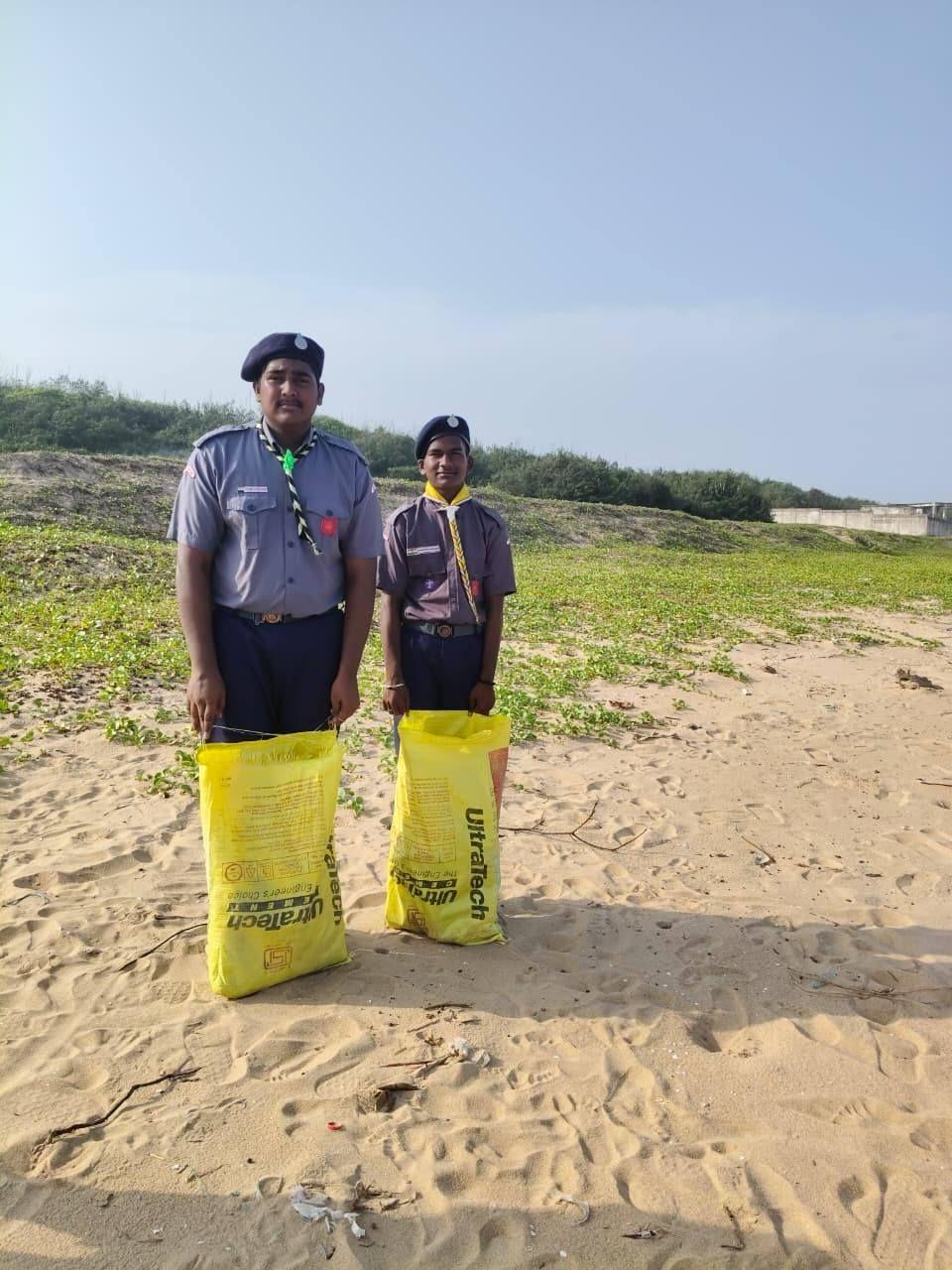 Alongside these social initiatives, the Scouts took part in the Beach Cleaning Campaign – Day 2, an effort to protect and preserve Odisha’s beautiful coastline. Led by Aniket Kumar Nayak, Hemsundar, T. Gunasekhar, Iswar Rao, and Sagar Sahu, the Scouts engaged in cleaning activities to raise awareness about environmental responsibility and sustainability — reminding everyone that caring for the planet is also a form of service.