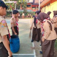 Kami perwakilan dari ekstrakurikuler Pramuka juga melaksanakan giat ini. Kami membersihkan sanggar Pramuka, arenya, juga lapang voli yang ditugaskan oleh pihak sekolah.