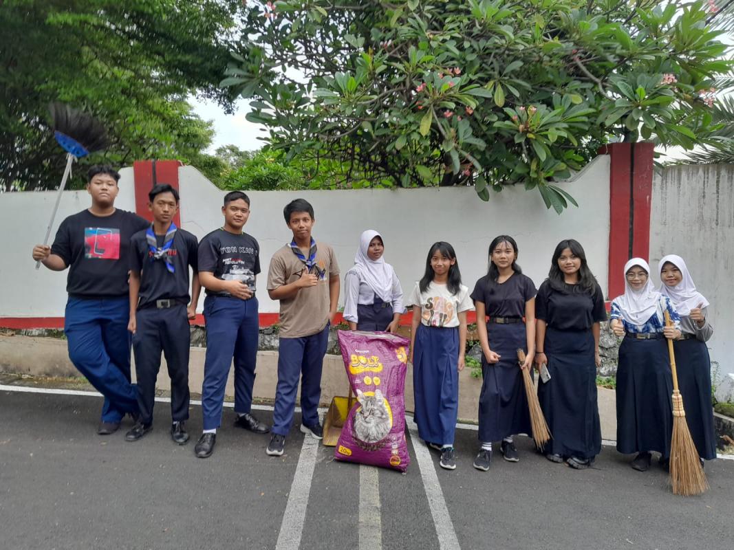 Mengajak teman satu organisasi Pramuka untuk bergerak, membersihkan sampah di lingkungan kami, agar bisa mewujudkan lingkungan yang sehat dan bersih.