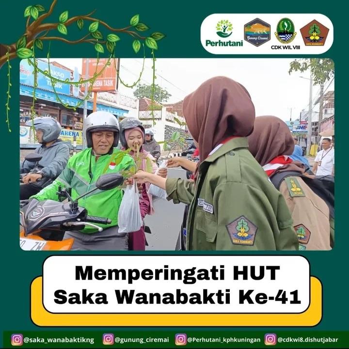 Kegiatan Ini dilaksanakan Bertepatan dengan Hari Ulang Tahun Saka Wana Bakti Kuningan, Pembagian Bibit Pohon Ini dilaksanakan didepan Kantor Perhutani Kuningan atau sekretariat Saka Wana Bakti Kuningan, dibagikan langsung oleh Pengurus Saka Wana Bakti kepada Masyarakat sekitar..