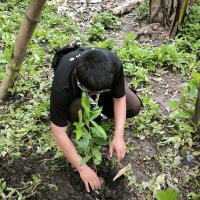 Saya dan teman-teman bersama-sama menanam pohon salam di kebun belakang rumah kakek teman saya dalam rangka aksi Earth Day. Kami mencari posisi yang cocok untuk ditanami serta memilih tanah yang subur. Setelah itu, kami menanamnya bersama-sama sebagai bentuk kepedulian untuk menjaga lingkungan alam dan menjaga bumi kita agar tetap hidup dan sehat.sehat