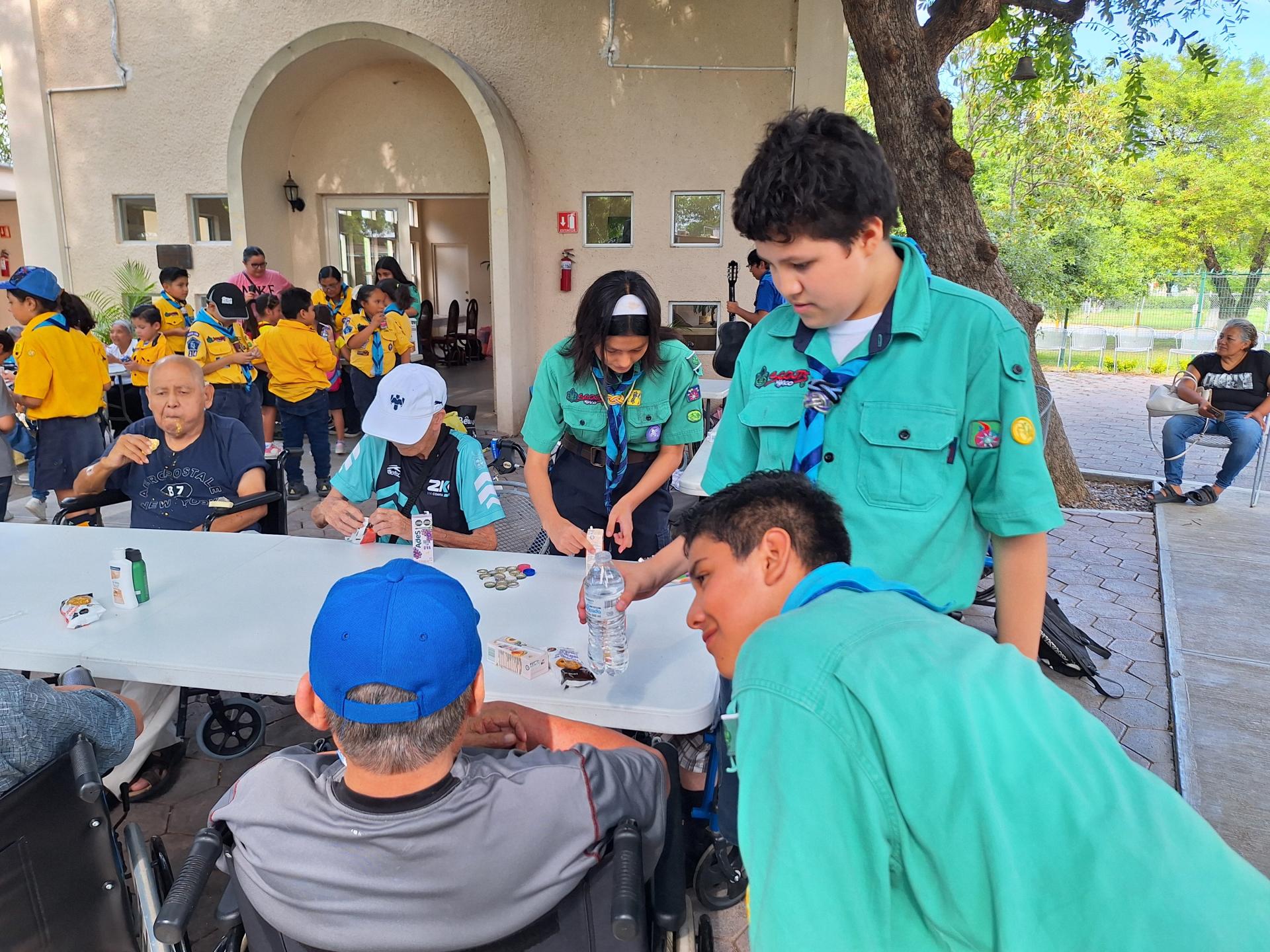 Mang (Mikel Darien Salinas Araiza) de la Manada Waigunga del Gpo 14 de la Provincia Nuevo León, Mex. Se motivó a ayudar al hogar de la Misericordia después de una visita que realizó en compañía de sus papás y observar todas las necesidades que tenían las personas de la tercera edad.