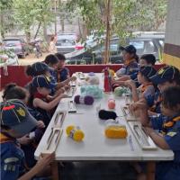 The first step to make the looms available to the children and the solution to this problem came from a by the chief, the pack's assistant. The looms were made from scratch,with the help of volunteers - parents. After counting the scarves that would be produced by the children and gathering volunteers from the children's parents and members of the scout group.