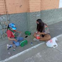 se realizó la colocación de los comederos y bebederos en la Iglesia de San Miguel y el Parque Carrusel. También se realizó una pequeña feria de concientización con carteles sobre el trato hacia los perros en situación de calle a las personas que estaban cerca del lugar.