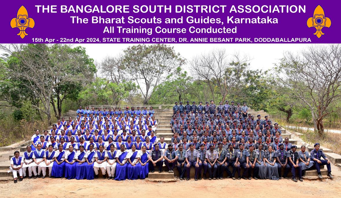 The Bangalore South District Association hosted a comprehensive Scouting training program at Dr. Annie Besant Park in Doddaballapur, from April 15th to 22nd, 2024. The program offered two distinct tracks: Basic and Advanced. The total staff were 30 members and the total beneficiaries were 200 people. The same was executed with the unparalleled support of trained volunteers. By combining these courses, the Bangalore South District Association offered a well-rounded training experience, empowering both new and seasoned leaders to create enriching scouting programs.