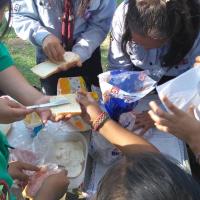 Por lo regular se repartieron sándwiches, tortas, café y agua, durante la última jornada la comunidad de caminantes "Templarios" apoyó con diferentes guisados, agua y tortillas.