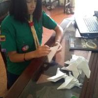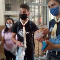 Diagnóstico: En el marco de la cuarentena social por la pandemia del COVID-19, iniciada en marzo 2020, se identificó por medio de la observación que 1. ha aumentado la cantidad de personas en situación de calle, con poco acceso a alimentos y tapabocas; 2. estas personas pueden necesitar también, desde lo afectivo, recibir un mensaje de aliento sobre la paz, en vista de la situación que están atravesando; 3, la Parroquia de María Auxiliadora se esfuerza por entregar alimentos a las personas que lo requieren, colaborando y brindando apoyo. En alianza con la Parroquia mencionada, para establecer alianzas con los grupos comunitarios de acción social cercanos al Grupo Scout, y en vista de que hay personas que necesitan atención, tras haber revisado la Actividad N° 1 mensajes de Paz del Proyecto Pilares del Futuro, se propone entregar por persona un combo el cual está conformado por una arepa, una fruta, un tapabocas, una paloma de origami y un mensaje escrito sobre la Paz.