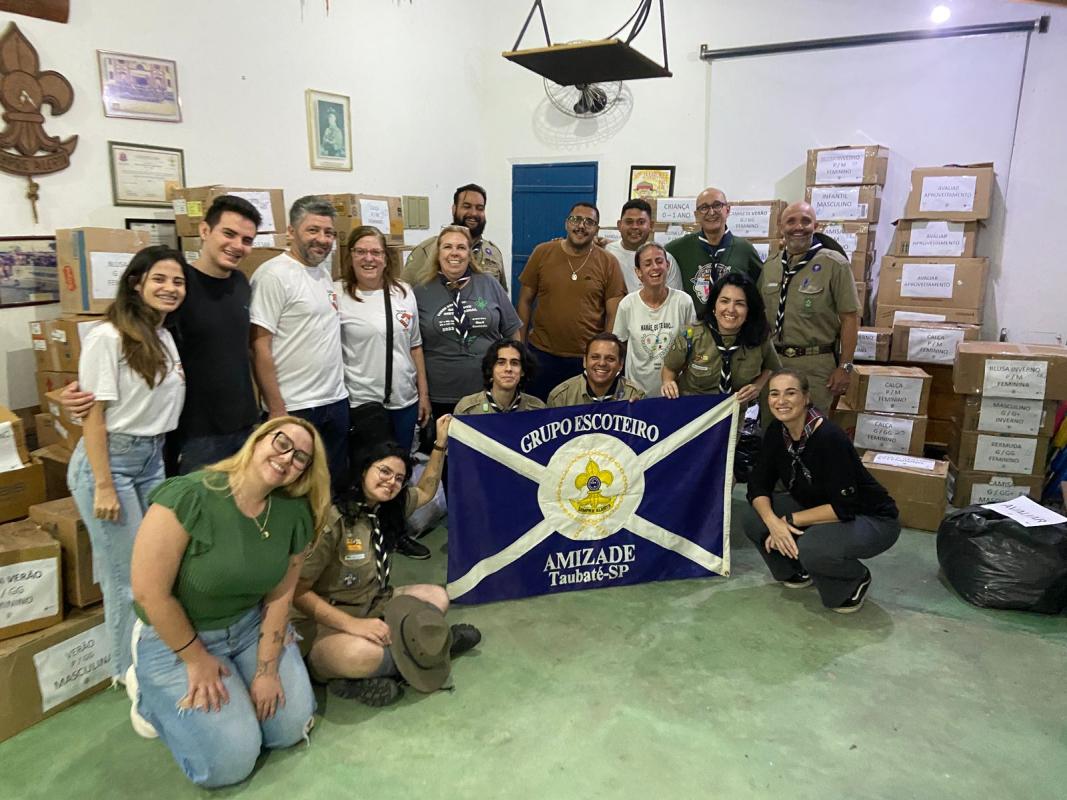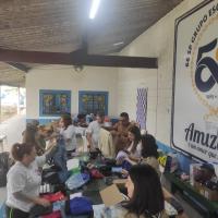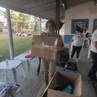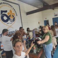 Em contato com a responsável pela gestão do Fundo Social, transferimos para nossa sede perto de 4500 peças de roupa. Com participação de jovens, chefes e outros adultos voluntários de nossa comunidade, fizemos a triagem de todo o material: identificando o descarte direto (mau cheiro, mofo, rasgadas, etc.) As em bom estado de uso, separamos por gênero, tamanho e tipo (verão, inverno). Ainda arrecadamos agasalhos em nosso bairro. Resultado: material pronto para ser distribuido a população carente.