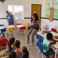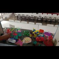 Assim eu comecei a pesquisar brinquedos feitos de material reciclável, comecei a fazer-los, depois eu entreguei esses brinquedos numa creche municipal da minha cidade e expliquei sobre sustentabilidade para as crianças.