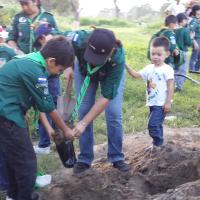 Durante el cierre de la Semana Scout que se celebró el día 22 de Febrero para conmemorar el natalicio de nuestro querido fundador del Movimiento Scout, Baden Powell, casi 150 niños y niñas de las difentes Manadas de los 6 grupos scout del Distrito 5 realizaron en conjunto la plantación de semillas de Caoba del Pacífico, un árbol maderable que está amenazado en vías de extinción en Honduras.