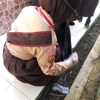 My project implementation is to work together to clean the area around my school, collect trash in the school area, then throw it into the final trash bin (TPA), not forgetting to tidy up the scattered plants outside their pots.