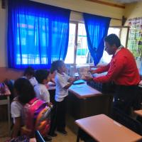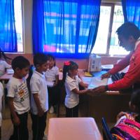 A cada niño le toco de a 3 libretas, 1 lapiz, 1 borrador y 1 sacapuntas.