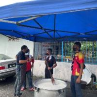 Distribution Of Bubur Lambuk In The New Norm Program at Balairaya Datuk Dr Rahman Ismail, Kampung Tengah Lembah, on 24 April 2021.