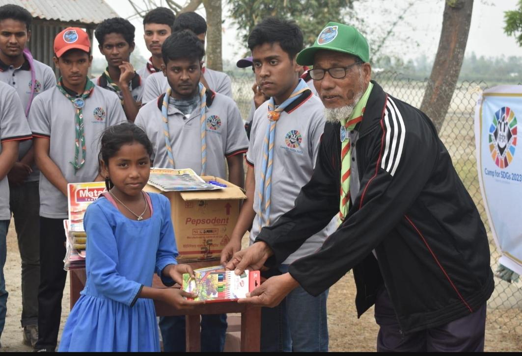 Members of Crystal Open Scouts Group initiated the project on 03/18/2023 at Scout Char ,Lalmonirhat , Bangladesh . We arranged some textbooks, colors geometry box and insufficient things and assist some respectable teachers of this school to distribute books and the materials properly.