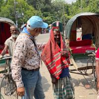 Bangladesh grapples with intense heat, leading to severe dehydration, making travel on the roads arduous. Despite the scorching conditions, many rely on rickshaws for their livelihoods. In light of this, we aimed to support these individuals by distributing towels. These towels serve as a shield against the sun and offer a means to cool down their bodies when soaked, reflecting our commitment to standing by them during the heatwave.