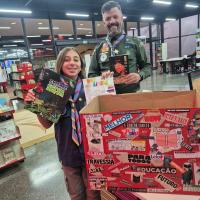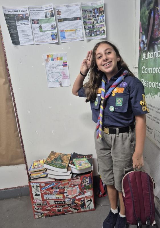 Iniciei conversando com minha mãe e com o meu chefe orientador a respeito e ele gostou da ideia. Junto com a Chefe Diretora de Métodos (Poli), estruturei a forma de realizar o projeto, escolhendo o período de arrecadação, destino, objetivos e com essas informações, fiz um cartaz, decorei uma caixa com a temática de doação de livros e divulguei dentro do meu grupo escoteiro e também na comunidade, por meio do WhatsApp.
