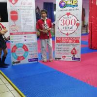 Por lo anterior, asistí a la clínica del IMSS en la ciudad de San Luis Potosí en busca de información y capacitación y aprendí del Dr. Freder Sandoval, difundí en mi escuela primaria Fco. González Bocanegra, en mi Grupo V "Avanzada", en el "Fuego Nuevo" de mi provincia San Luis Potosí y en mi escuela de Taek Kwon Do "Guerreros Aztecas", acompañé a 3 personas para realizar su donación altruista de sangre y apoye mi compañero de manada para seguir con el proyecto.