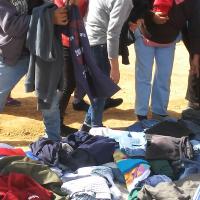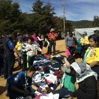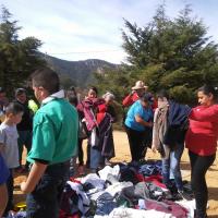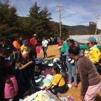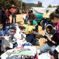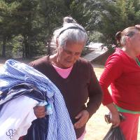 Al ver que ya toda la gente estaba reunida, esto con el apoyo del líder ejidal quien confirmo que ya todos estaban presentes, así como personas de las comunidades aledañas, comenzamos con la repartición, que es algo de lo más tardado; poco a poco cada uno de los habitantes comenzaba a tomar algo, y así uno por uno, entre niños, niñas, jóvenes, señoras y señores, fueron escogiendo algo de ropa, y hasta que todos tenían por lo menos 3 prendas, volvíamos a comenzar con otra ronda para que pasaran por mas ropa, y así sucesivamente hasta que se acabara toda la ropa, y hasta que la gente se retirara con lo suficiente para soportar un poco más este invierno.