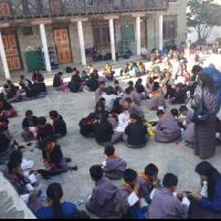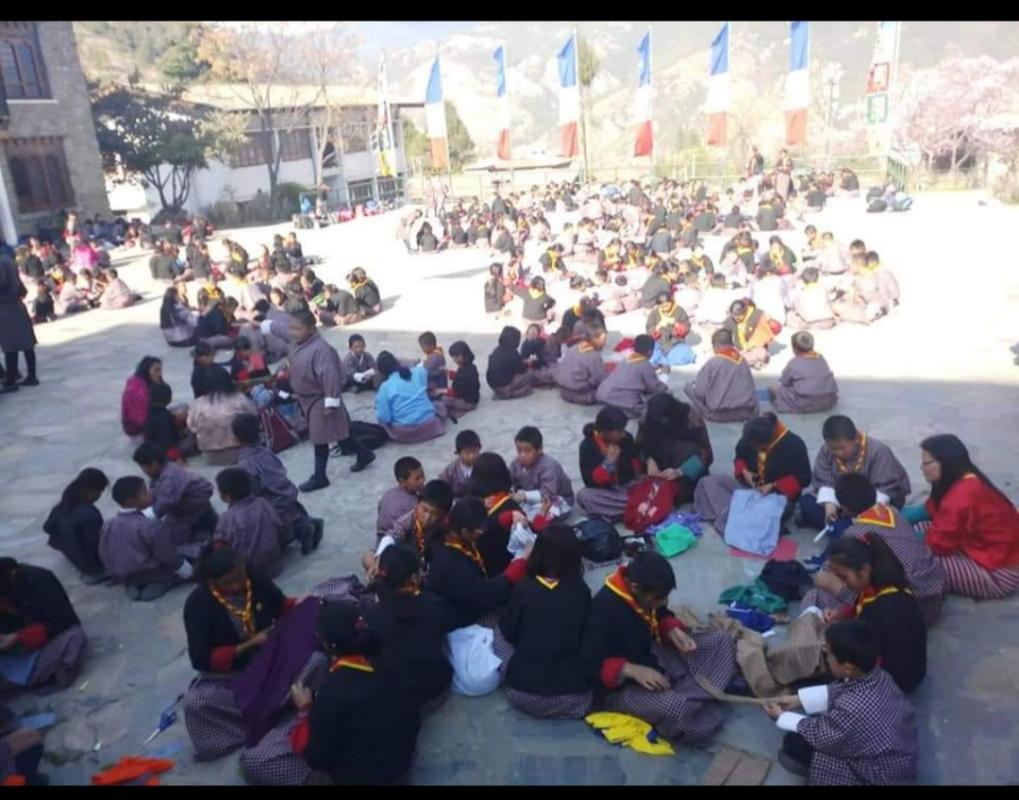 The event occured at Jigme Namgyel lower secondary school .We brought Our old shirts or curtains , needle and thick thread.We were taught how to do it by Tarayana club members . After learning from them we the scouts who learned taught our other friends who taught other scouts , and the circle began.