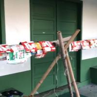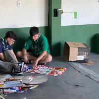 Arrecadamos caixas de leite e suco com apoio da comunidade. Em seguida, lavamos, secamos e cortamos as caixas para deixá-las planas.