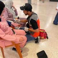 The distribution of volunteers to the shelter centers and providing assistance to displaced people ,including first aid , Health services ,food, cleaning supplies, mattresses, and Blankets.
