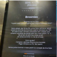 Iniciou faz uma pesquisa sobre energias renováveis e pensou em impactar a comunidade com o uso da energia renovável colocando luzes de energia solar no parquinho do prédio onde mora, para as crianças poderem aproveitar o espaço. Pediu autorização no prédio para instalar as lâmpadas. Enviou comunicado para os moradores e vendeu seus brownies. Arrecadou o dinheiro! Comprou as lampadas, e comprou também alimentos para ajudar na arrecadação do grupo Roama.