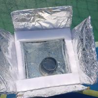 Realizei a montagem de 1 forno solar, apresentando ele dia 10/05/2025, e logo após distribuindo ele a pessoas em situação de rua e ensinando sua montagem para que possam reproduzir no futuro.