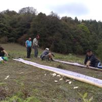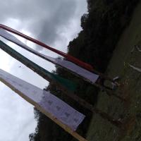 Eracting of prayer flags.