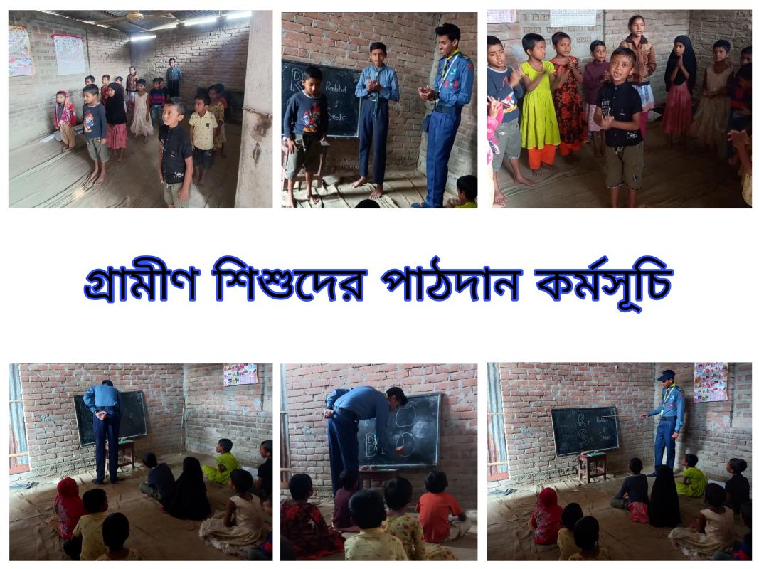 আমাদের মূল উদ্দেশ্যে ছিল শিশুদের মাঝে শেখার আগ্রহ তৈরি করা।তাই আমরা ৪ জন স্কাউট সদস্যের একটি দল এ কার্যক্রম পরিচালনা করি।এখানে প্রায় ১৫ জন গ্রামীন শিশুদের মাঝে কথা বলার দক্ষতা, আচার-আচরণ,ভদ্রতা ইত্যাদি নৈতিক গুণাবলির পাশাপাশি,বিভিন্ন আনন্দমূলক কার্যক্রম ও গেমসের মাধ্যমে তাদের পাঠদান করি।