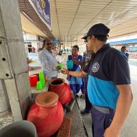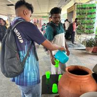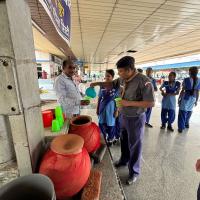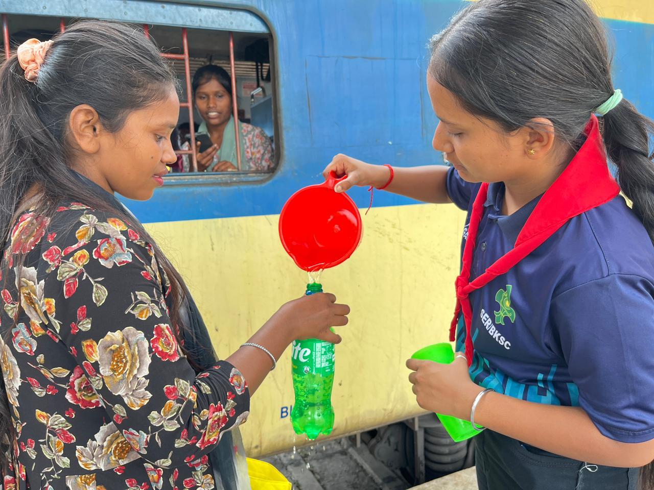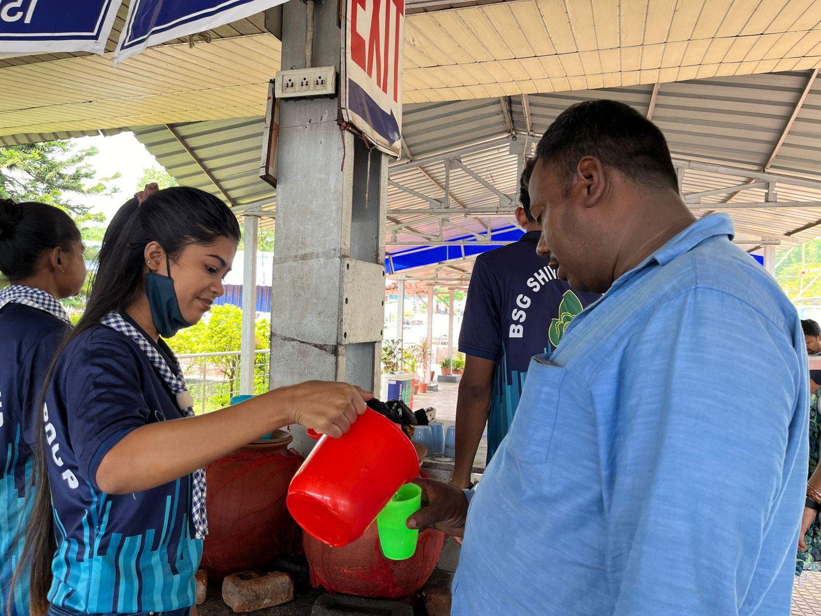 Firstly we take permission from the Authorities and group then we purchase all the things which are required in the water service. We discussed our plan to Station Superintendent. He was very happy after listening our ideas and aim. So, we brought earthen pots, Steel glasses, strainers and other essential items. Then we are divided in to 4 teams for the service.