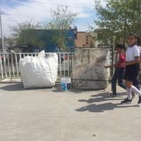 Nos dieron unos costales de tonelada para juntar diversos materiales y reciclarlos como PET, PEAD, PEBD, BOPP, Aluminio y hojalata. Con lo recolectado se pueden mejorar espacios en la escuela o mobiliario.
