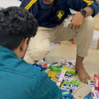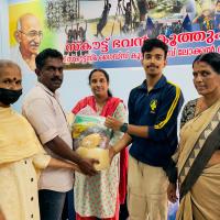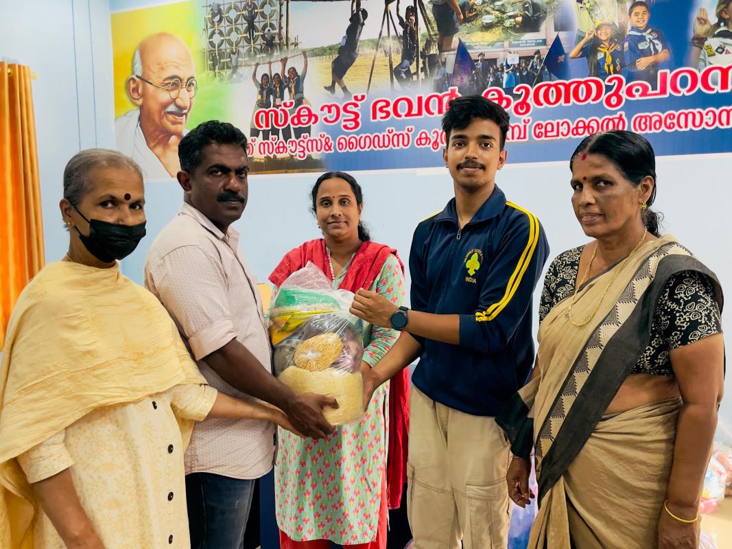 The Rover Scouts of Malabar Rover Crew decided to donate two kits for the service project. Each member arranged the food items, assembled the kits, and handed them over to the District Joint Secretary.