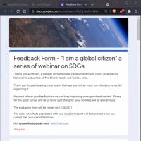 Today we learn about SDGs goals, Environment Study and during the session we asked some question and Mr.Manish Upadhyay sir told about Feedback form. Ending the webinar we played some quiz about sustainable development and enjoyed so much.