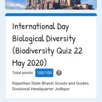 विश्व जैव विविधता दिवस 22 may 2020 को ऑनलाइन क्विज का आयोजन किया गया जिसमें मेने भाग लेकर 100 में से 100 अंक लाकरप्रमाण पत्र प्राप्त किया