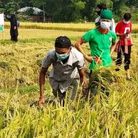 কৃষকদের ধান কাঁটায় সহযোগিতা