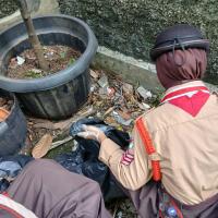 Saya membersihkan lingkungan bersama teman-teman saya dan mengajak warga untuk membuang sampah pada tempat nya.