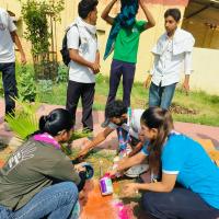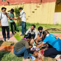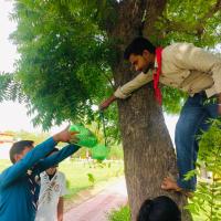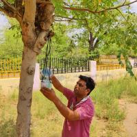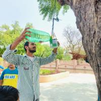 Due to the heat and lack of food and water in our park, birds had stopped coming. So my team and I thought of keeping water for birds on a tree in a park near us during the summer.