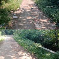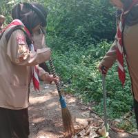 Kami membersihkan sampah di selokan dan jalanan dan menempatkan sampah disatu titik lalu membuangnya di tempat seharusnya