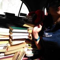 carga de libros y material para el lugar de transportes