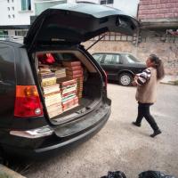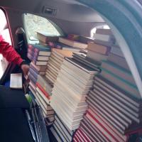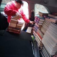 Translado de los libros de casa a camioneta