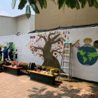 Comenzamos estudiando el entorno para entender las necesidades del lugar, luego adquirimos los materiales y nos pusimos a trabajar. Al principio, dudábamos sobre qué diseño transmitiría mejor nuestro mensaje, pero finalmente elegimos representar los principios scouts y un símbolo de unidad global: un planeta rodeado de niños de diferentes culturas.
