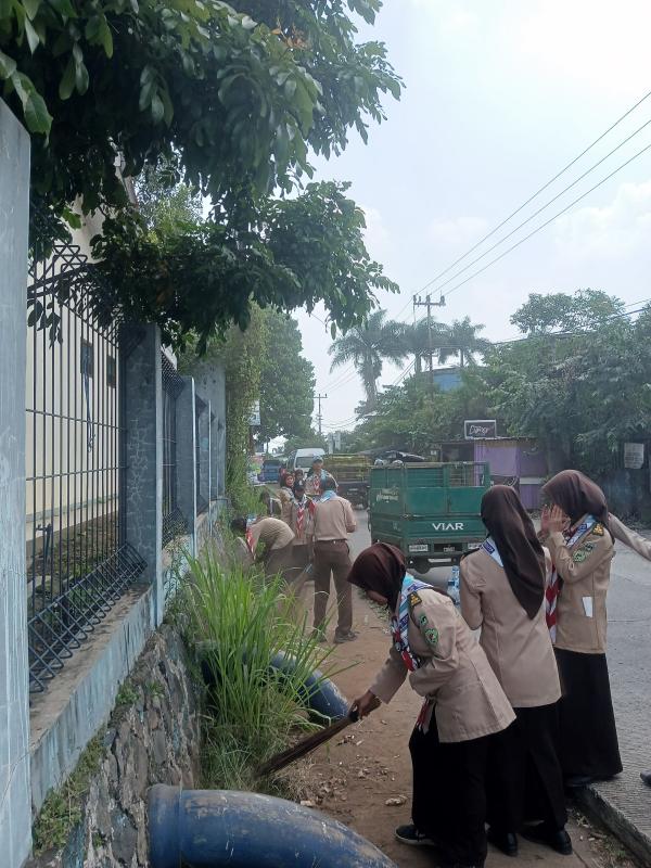 Membersihkan lingkungan sekitar dengan kebersamaan