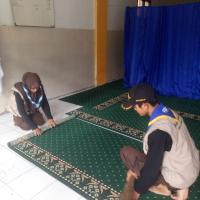 Setelahnya sampai di masjid kita mulai berbagi tugas, ada yang kebagian tugas menyapu halaman luar mesjid, menyapu dan menggulung karpet masjid, melipat sejadah.