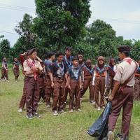 Pada awalnya kami berjalan dari sekolah menuju lapangan yang berada di citamiang saat berada di lapangan kami berkumpul lalu kami diberitahu untuk membersihkan lapangan dan kami dibagi menjadi 4 kelompok dan setiap kelompok membersihkan samah plastik di sebagian sisi lapangan