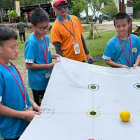 營隊活動介紹 (4/12)第一日1030-1200/營隊活動(一)/攻防箭活動體驗 攻防箭,又名穿雲箭,以特別設計的弓箭在面積約為一個籃球場大小的地方上進行,。 第一日1300-1600/營隊活動(二)/益智闖關活動 本次益智闖關活動由「密室逃脫」與「小隊闖關」所結合而成的活動,每小隊(約10人)須於活動本部解開「益智問題」。 第一日1900-2000/造夢職涯分享 邀請特別嘉賓講述自身成功經歷,引導弱勢家庭學子-勇敢為自己編織夢想,現場志工協助孩子們-寫下自己對未來的期許,並貼在夢想看板上。 (4/13)第二日0900-1030/營隊活動(三)/紀念品DIY:胸章配飾、環保提袋 本次DIY活動是製作胸章配飾及環保提袋。學員們可以選擇自己最喜歡的圖案、符號或創意設計及塗色,做成獨一無二的胸章配飾及環保提袋,讓學員隨身攜帶,展現自己的個人風格。 中華電信桃園營運處-AR繪畫魔法介紹 為鼓勵孩童發揮創意並體驗科技樂趣。 透過米菲多媒體AR互動繪圖中的AI技術,孩童的手繪動物從紙上「跳」入手機螢幕,化身生動的3D動畫,還能與作品合影留念。