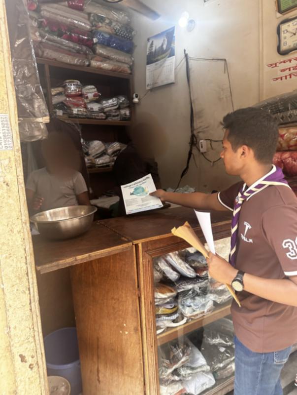 The Former Senior Patrol Leader of BIAM Model School & College Scout Group, Iled this awareness campaign with the support of Patrol Leaders Rafiqul Islam Uday & me,and rover member Md. Raiyan Mollah from Samatat Open Scout Group. We visited local stores and distributed informative leaflets on how to minimize water wastage in daily life.