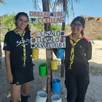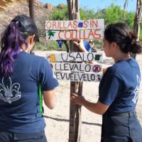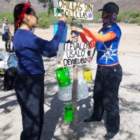 Aprovechamos la solicitud de servicio que se pidió a nuestro grupo para limpieza previa durante el festival internacional "Navachiste 2019" pedimos permiso para colocar los contenedores y para mi sorpresa todos los trabajadores empezaron a ayudarme en la colocación de los letreros. Unimos entonces el esfuerzo de quienes trabajamos en el proyecto, además de los trabajadores del festival y los asistentes al evento que estuvieron utilizando los ceniceros del proyecto "Orillas sin colillas"